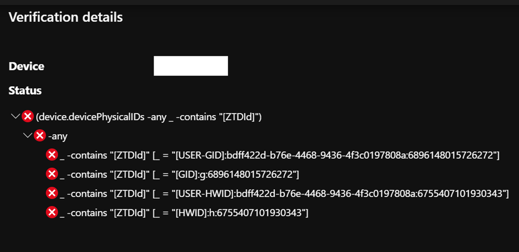 After the rule is validated against the selected user or device, you can access the details to find why the user or device are (or are not) added as member of this group