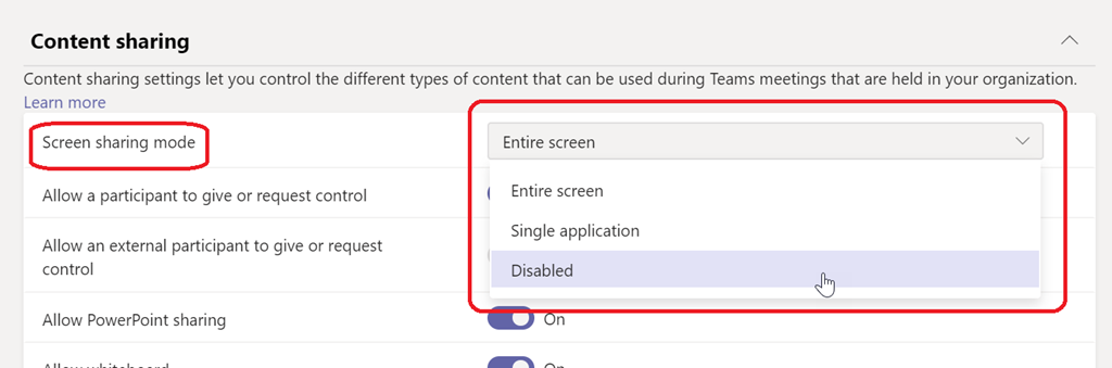 A new Teams Meeting policy setting is becoming available to let Teams administrators define how participant’s screen can (or can not) be shared.