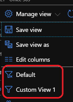 Then you can customize the view by adjusting the filters and/or editing the displayed columns using the Manage view\Edit columns