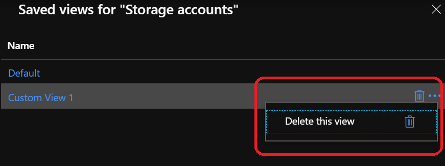 Once you have custom views saved, you can also browse all existing saved views using the option Manage view\Browse all views for <resource type>, allowing you to delete a view