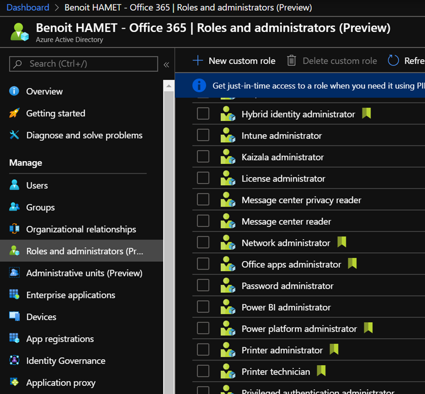 - You must use either a global administrator or a Print Administrator (which a new administrative role) account