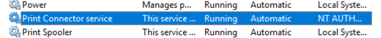 You can confirm the setup has been successful by checking the service Print Connector service is up and running