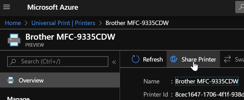You can confirm the registration has been completed successfully by accessing the Universal Print blade; this is also from there you can manage or unregister a printer