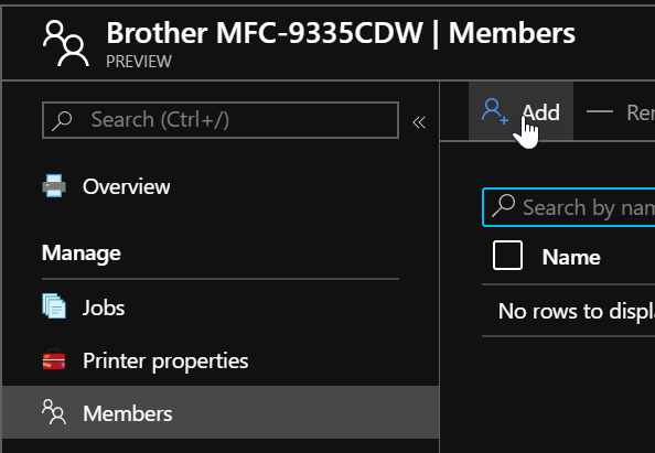 After sharing the printer you then have to define who can use it by accessing the Members blade