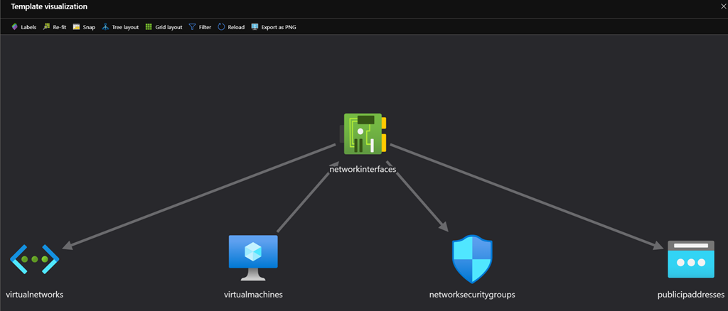 Then from the Export Template blade you will see a new option called Visualize template which is going to display all dependencies associated with the resource you are deploying/have already deployed