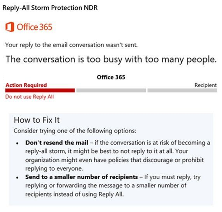 With it, Exchange Online will detect when such storm is occurring and will block any further reply and will send back NDR (Non Delivery Report)