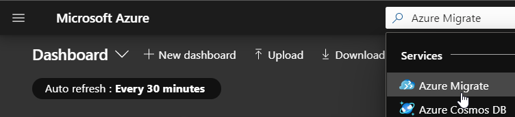 - Connect to your Azure portal (https://portal.azure.com/) and reach out the Azure Migrate blade