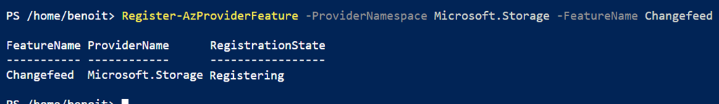 Register-AzProviderFeature -ProviderNamespace Microsoft.Storage -FeatureName Changefeed
