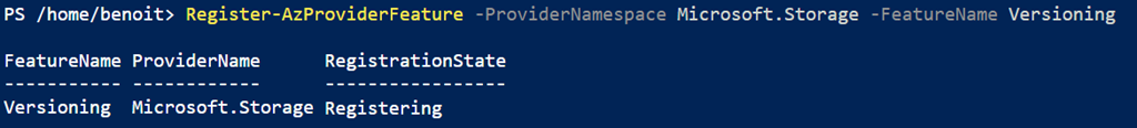 Register-AzProviderFeature -ProviderNamespace Microsoft.Storage -FeatureName Versioning