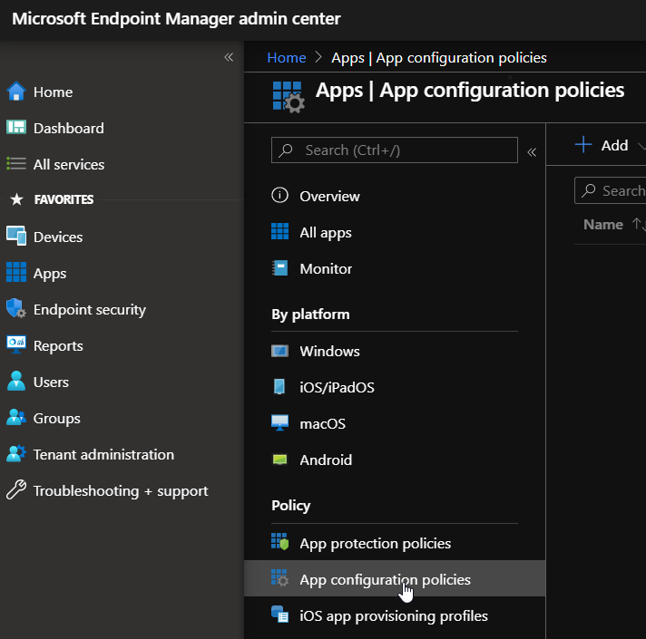 Depending of the application policy type – Managed devices or Managed apps – the configuration options are a little bit different; the easiest one is the Managed Apps