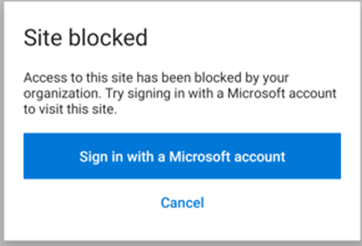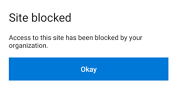 When the policy is applied, end-users will get notified when they try to access unauthorized website; depending if you allow the redirection to the personal context, the message will be a little bit different: