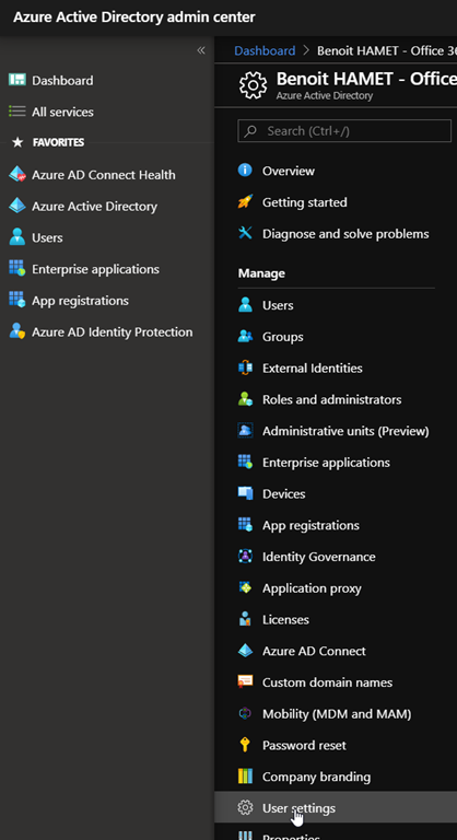 First you need to enable the capability by accessing your Azure AD, open your Azure AD portal (https://aad.portal.azure.com/) or Azure portal (https://portal.azure.com) and reach the Azure Active Directory\User Settings