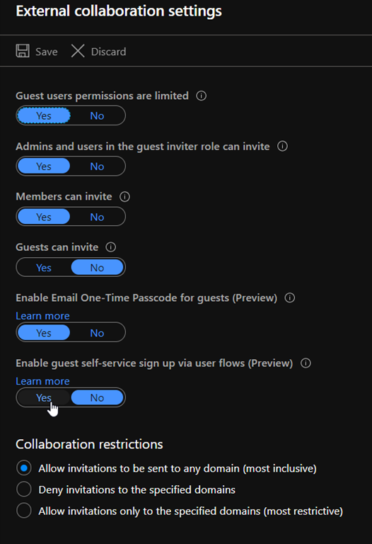 This will allow you to invite external users (guest) to access resources/applications without further configuration from them.