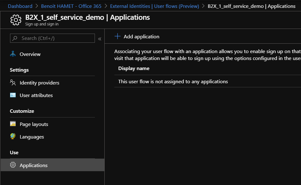Once the flow is created, you can define the application(s) going to be available through the self-service by accessing the flow you have created and then Applications blade