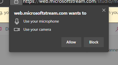 Then you may have a notification from your web browser (Edge or Chrome) requesting permission to use microphone and camera