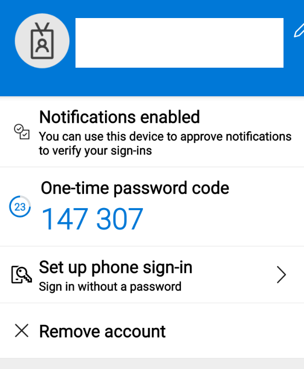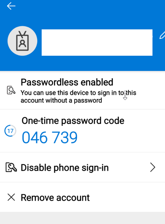 When you open one of the account configured for MFA, you are now accessing a full screen experience let you know get the one time code, manage password less, phone sign in options or even remove the account