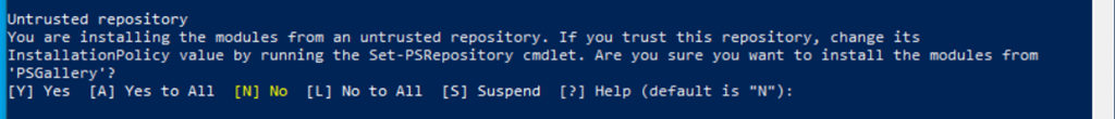 As for any PowerShell module you may be prompted to trust the location and/or to use the Nuget module