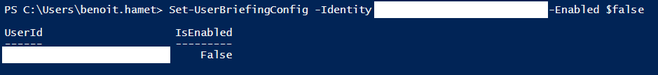 Set-UserBriefingConfig –Identity $emailaddress -Enabled $false