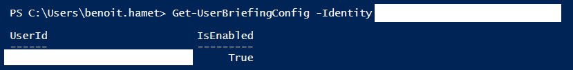 Get-UserBriefingConfig –Identity <email address>