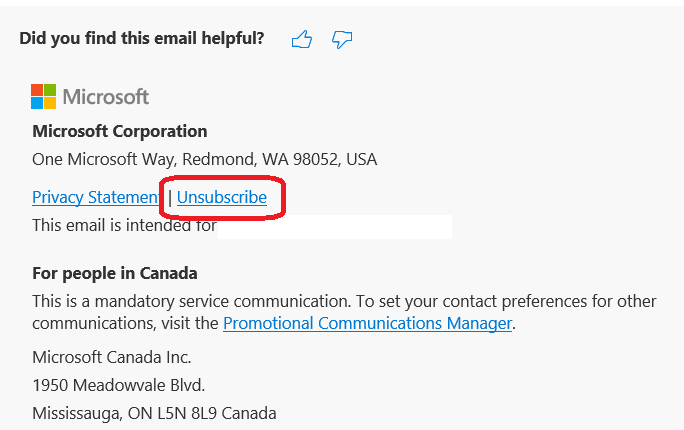End-user can choose to unsubscribe using the link shown at the bottom of the email