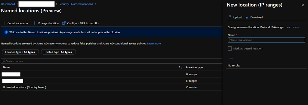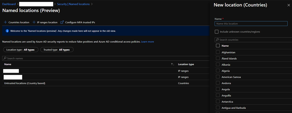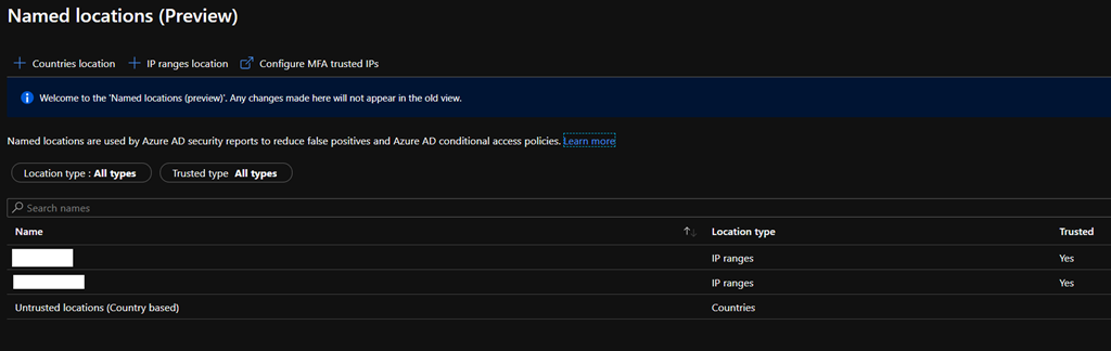 Well, the administration experience for the Named Location has a new interface in preview, which I think make it easier to manage.