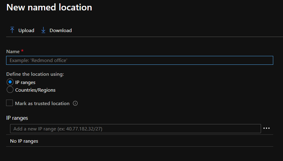 If you work with Azure Active Directory (AAD, Azure AD), you should already know the Named Locations (also known as Trusted Locations) settings which allows you to define a list of IP addresses or ranges to be marked as trusted or not and then can be used with Conditional Access.