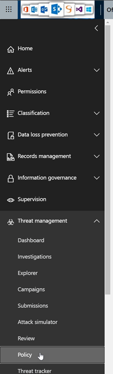 To turn on the Safe Documents, logging to your Office 365 Security portal (https://protection.office.com/) and access the Threat Management\Policy blade