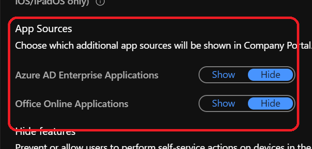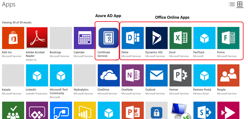 Well, until now, Azure AD or Office Online applications were not visible from the Company Portal.