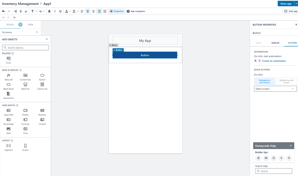 Honeycode is mainly oriented (for now?) for spreadsheet oriented data sharing (aka Excel based)