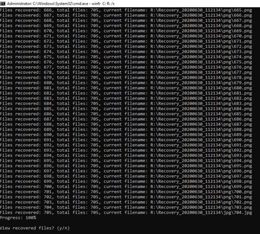 Once the process is completed you can either manually open Windows Explorer to browse the recovered files or let the tool do it for you by answering Y to the question “View recovered files?”