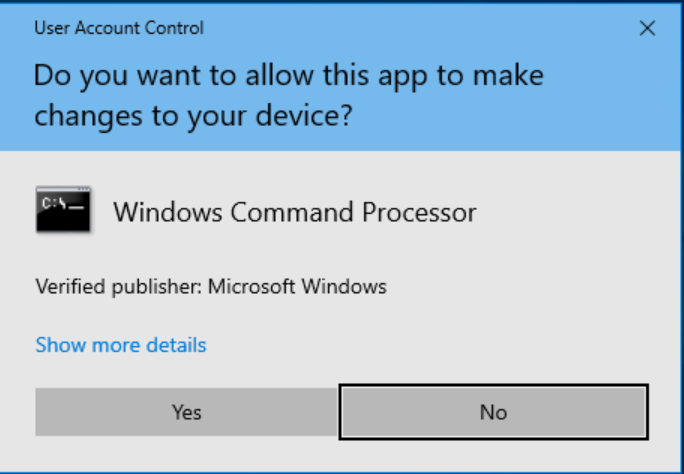 When you launch the application it will launch a command prompt using the run as administrator; depending of your configuration you may get a User Account Control (UAC) prompt