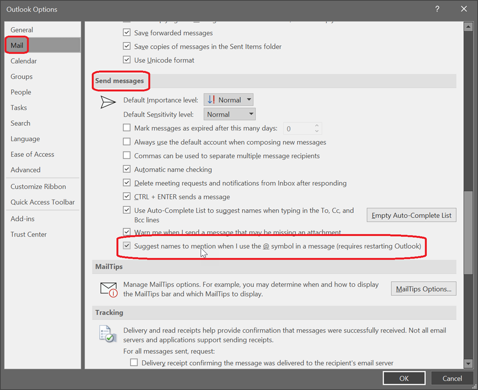 After restarting your Outlook client, the @mention will now longer works.