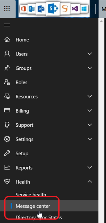 To start using this new capability, logon to your Office 365 administration portal (https://admin.microsoft.com/) and access the Message Center blade under the Health section.