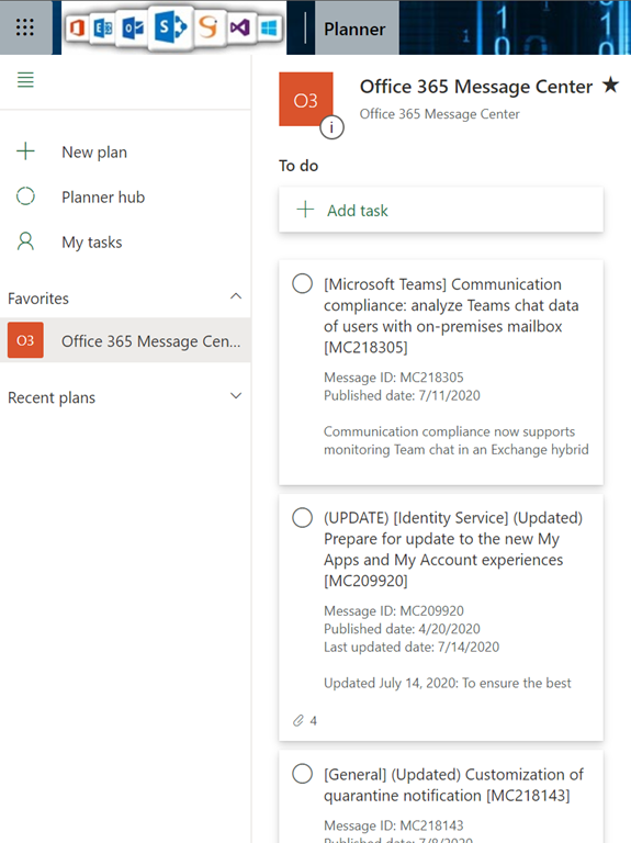 Well, the Message Center can now sync with Planner, helping task automation for action.