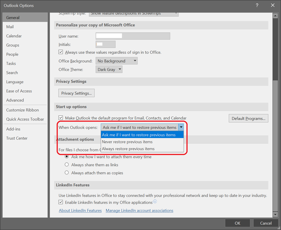 Well, good news if you are using Outlook Build 13006.20002 or later, you can now get these windows automatically reopened after the restart.