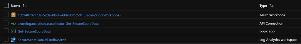 - 1 workbook – <unique identifier> (SecureScoreWorkbook)