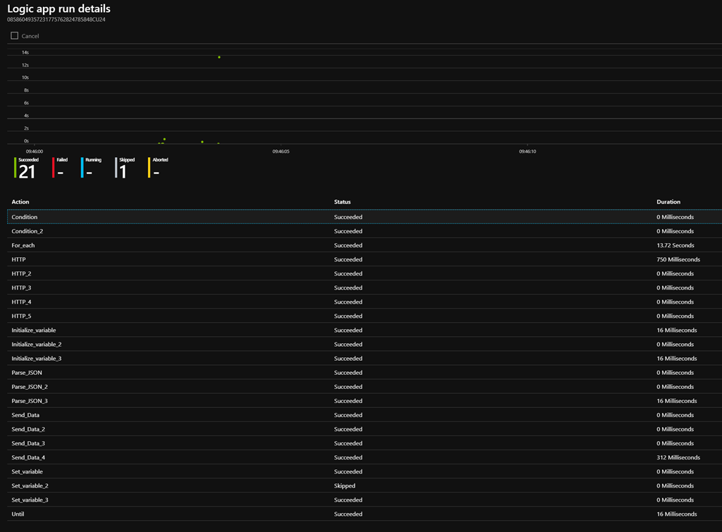 The initial run will take about 15 s; you can check the result if all steps have been executed successfully