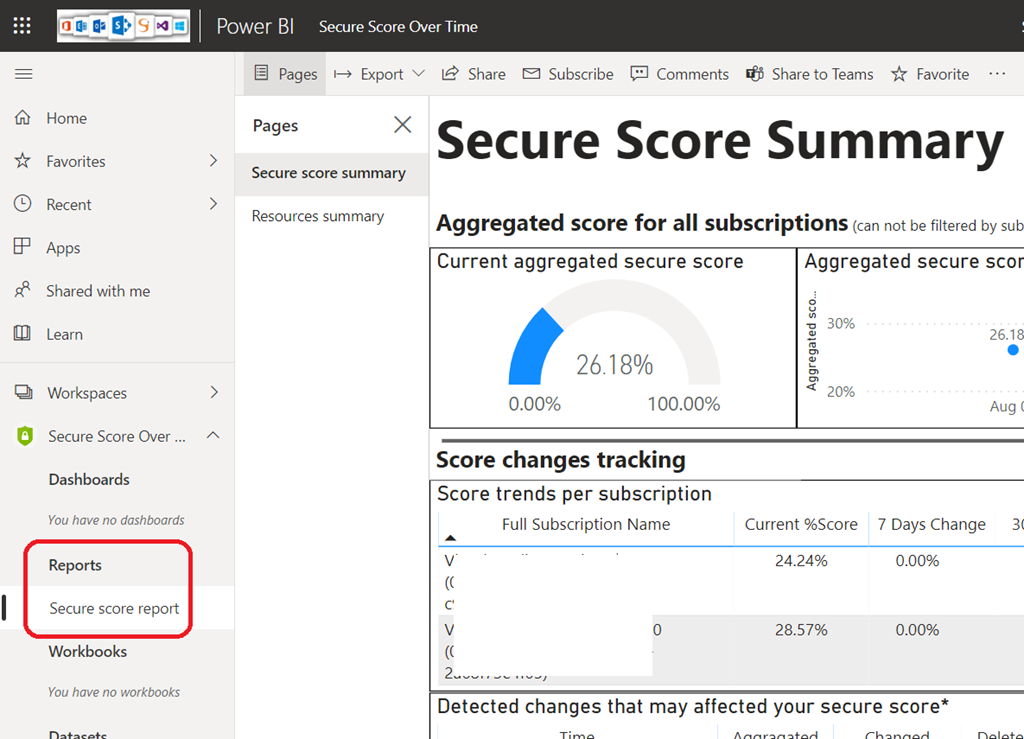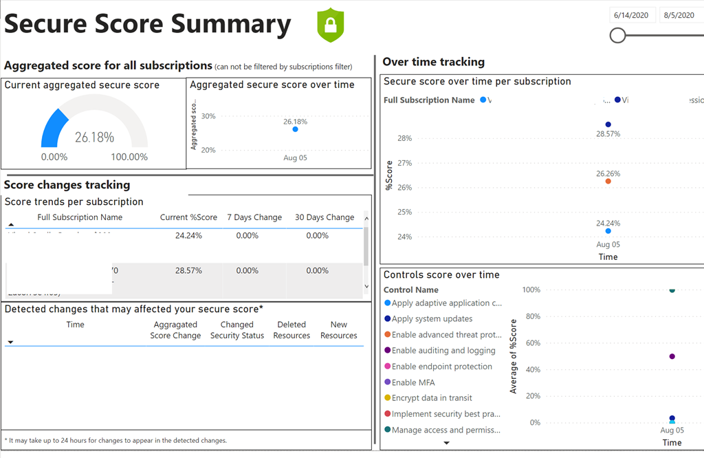 The team in charge of Azure Security Center has developed a Power Bi dashboard to help you track your Secure Score evolution. It also includes backlog of actions to be performed.