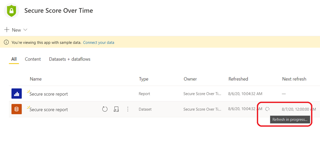 Then the Power BI application is refreshing the data; it may take up to 10 minutes to complete