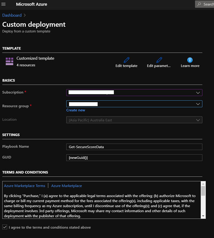 Then you will need to deploy a playbook to get Secure Score data (Get-SecureScoreData); you can deploy from here https://portal.azure.com/#create/Microsoft.Template/uri/https%3A%2F%2Fraw.githubusercontent.com%2FAzure%2FAzure-Security-Center%2Fmaster%2FSecure%2520Score%2FGet-SecureScoreData%2Fazuredeploy.json)