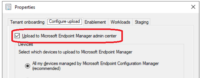 Then you need to the Upload to Microsoft Endpoint Manager admin center option available under the Configure upload tab
