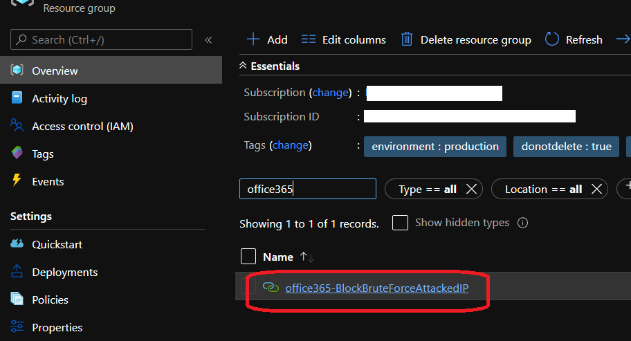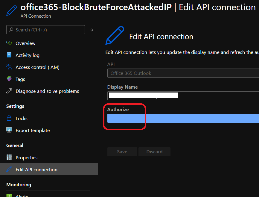 Then you need to grant the Office 365 API called office365-BlockBruteForceAttackedIP by accessing the Edit API connection blade by hitting the blue button