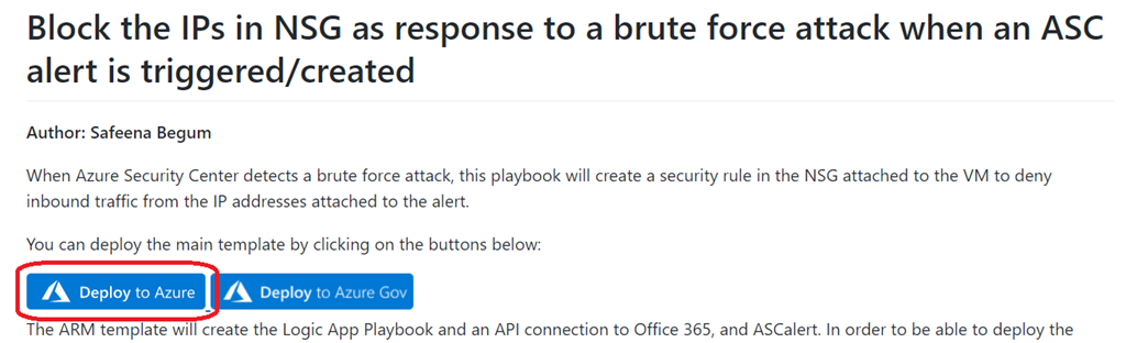 - deploy the automation available here https://github.com/Azure/Azure-Security-Center/tree/master/Workflow%20automation/BlockBruteforceAttack