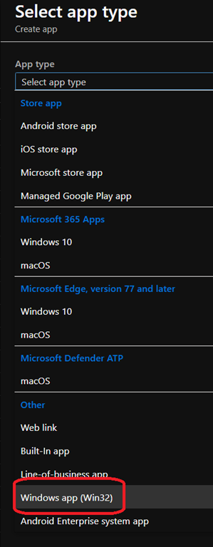 Then you need to download the Win32 app management prep tool from https://go.microsoft.com/fwlink/?linkid=2065730 to generate the custom Win32 app package to be deployed.