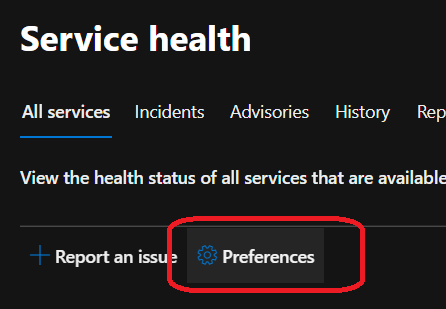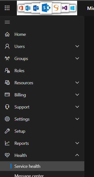 To start customizing your Service Health, connect to your Office 365 administration portal (https://admin.microsoft.com/) and go to the Health\Service Health blade