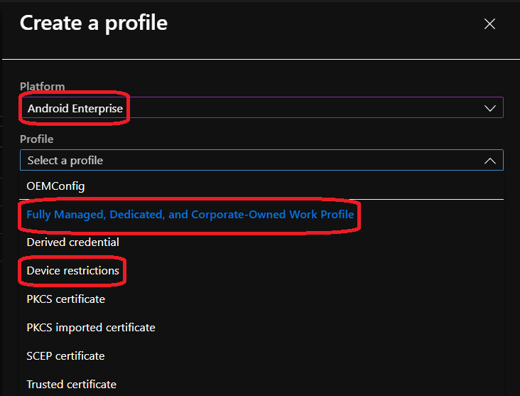 To enable this option, you need to use an Android Enterprise\Fully managed, dedicated and corporate-owned\Device Restriction profile