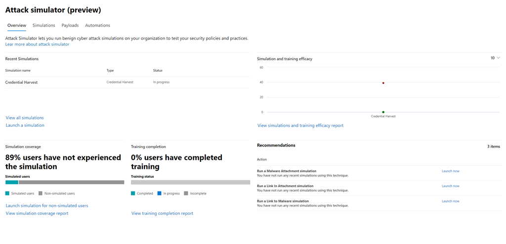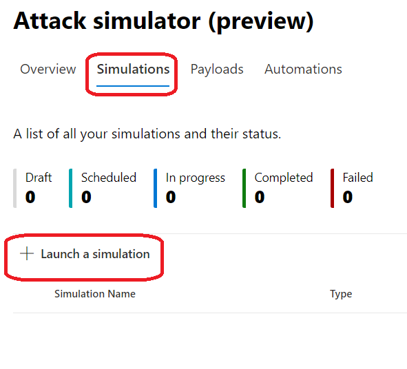 To launch one of these simulation, connect to your Office 365 Security Center (https://security.microsoft.com/) and access the Attack simulator blade