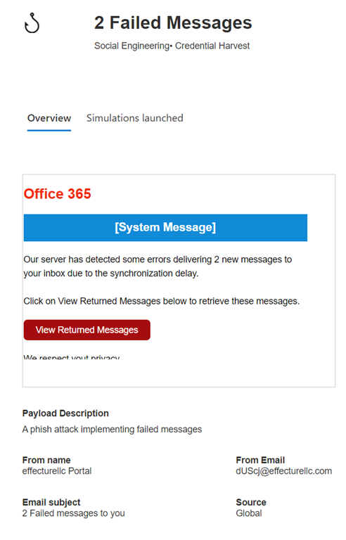 Once the simulation starts, targeted end-users will received the payload in their mailbox and you can monitor the progress of the simulation and assign training using the Overview tab