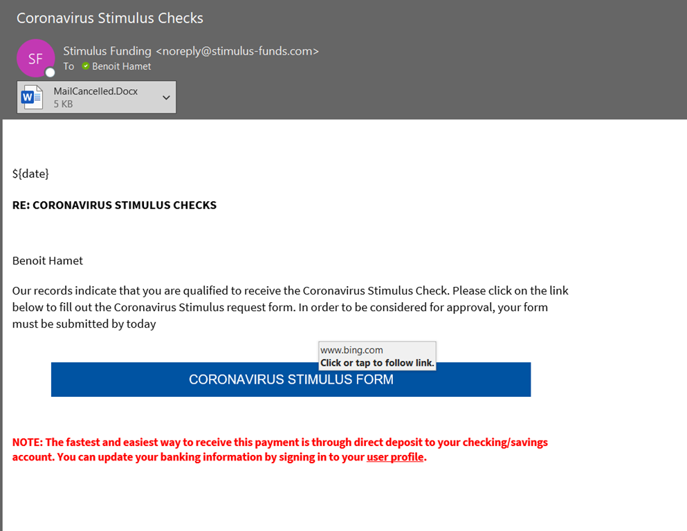 - Link in attachment, similar to credential harvest but the link is inside an attachment
