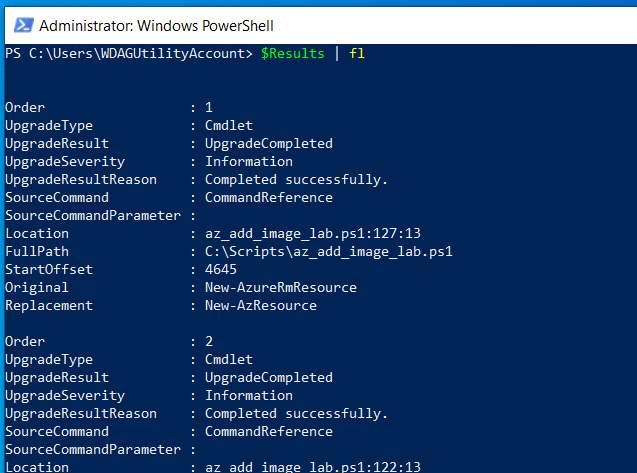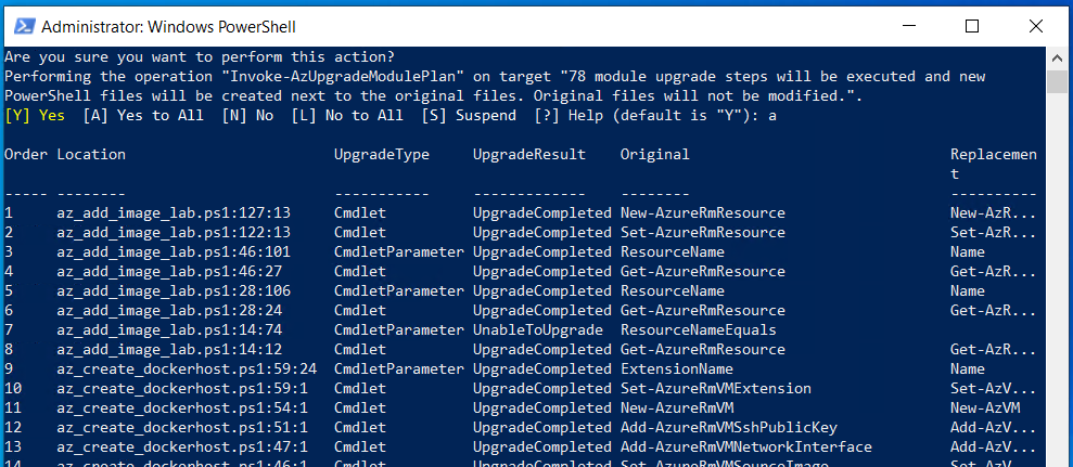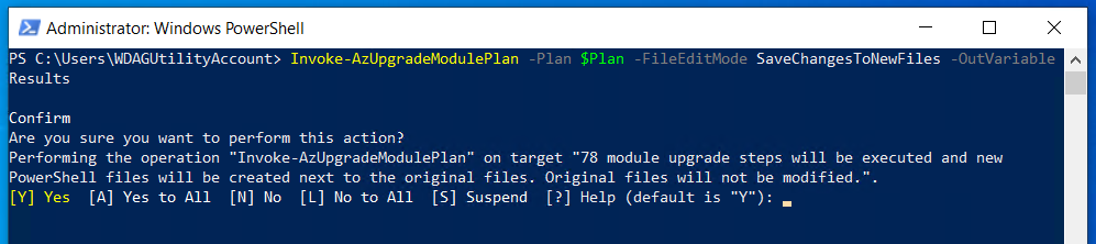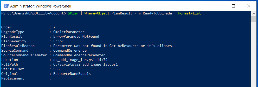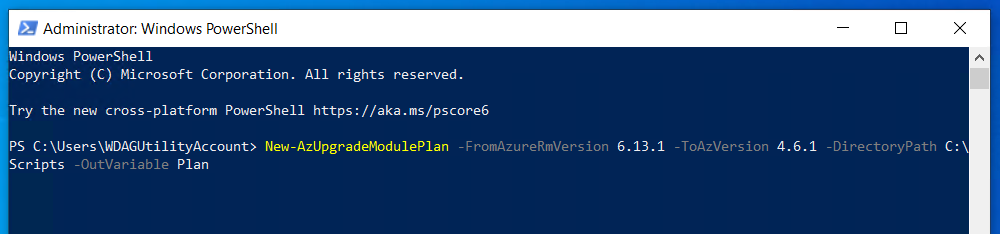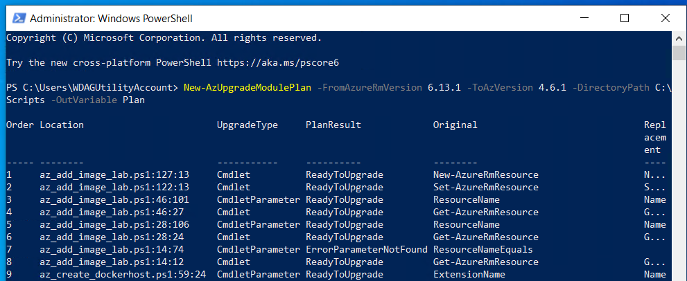 Once the above steps have been completed, you can now start to generate your upgrade plan by using the New-AzUpgradeModulePlan command